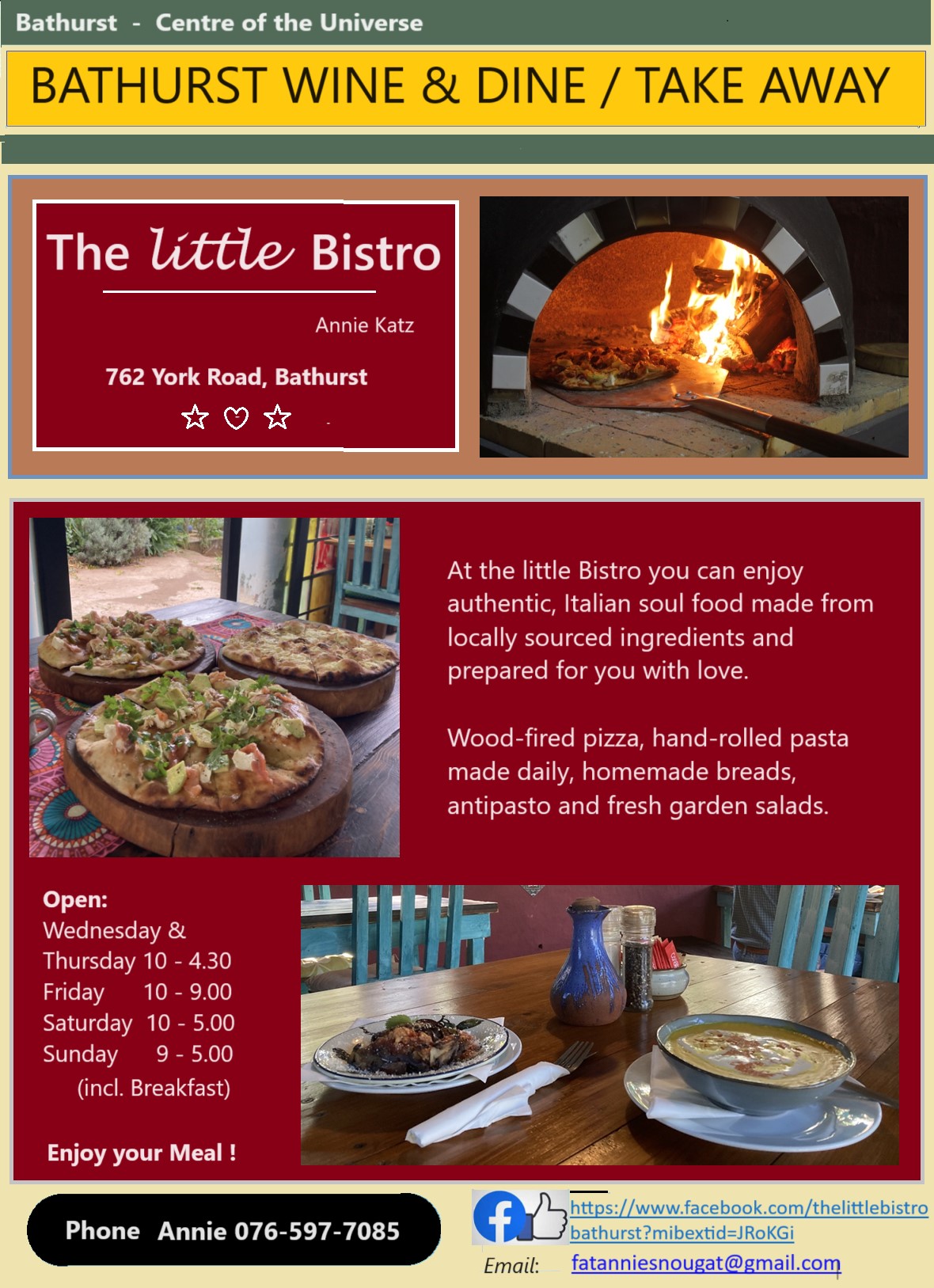 | The Little Bistro | Annie | 762 York Road | 076-597-7085 | fatanniesnougat@gmail.com | fb |