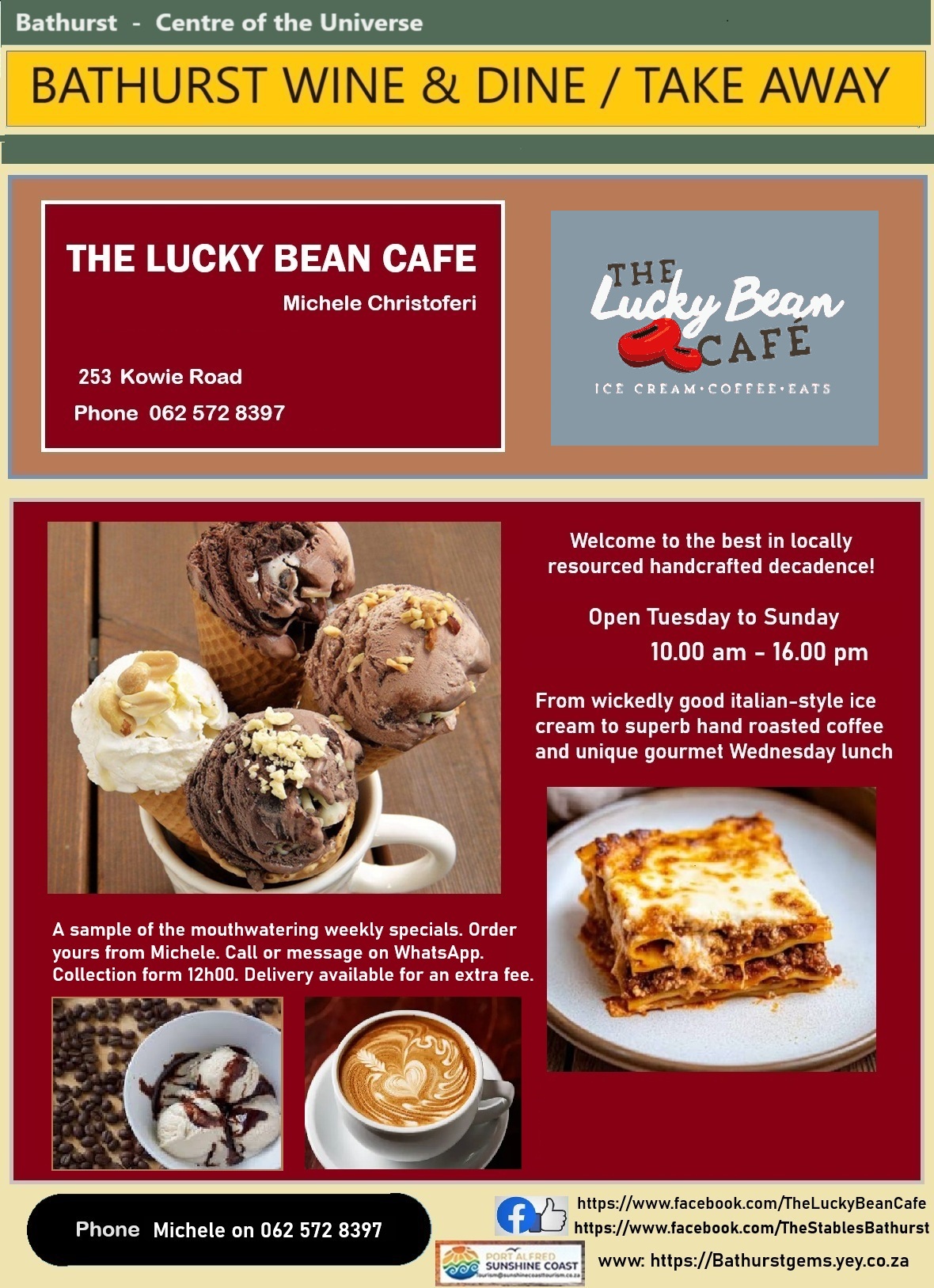 | – The Lucky Bean Cafe | Michele Christofferi | The Stables no. 1 | 062-572-8392 | fb | |